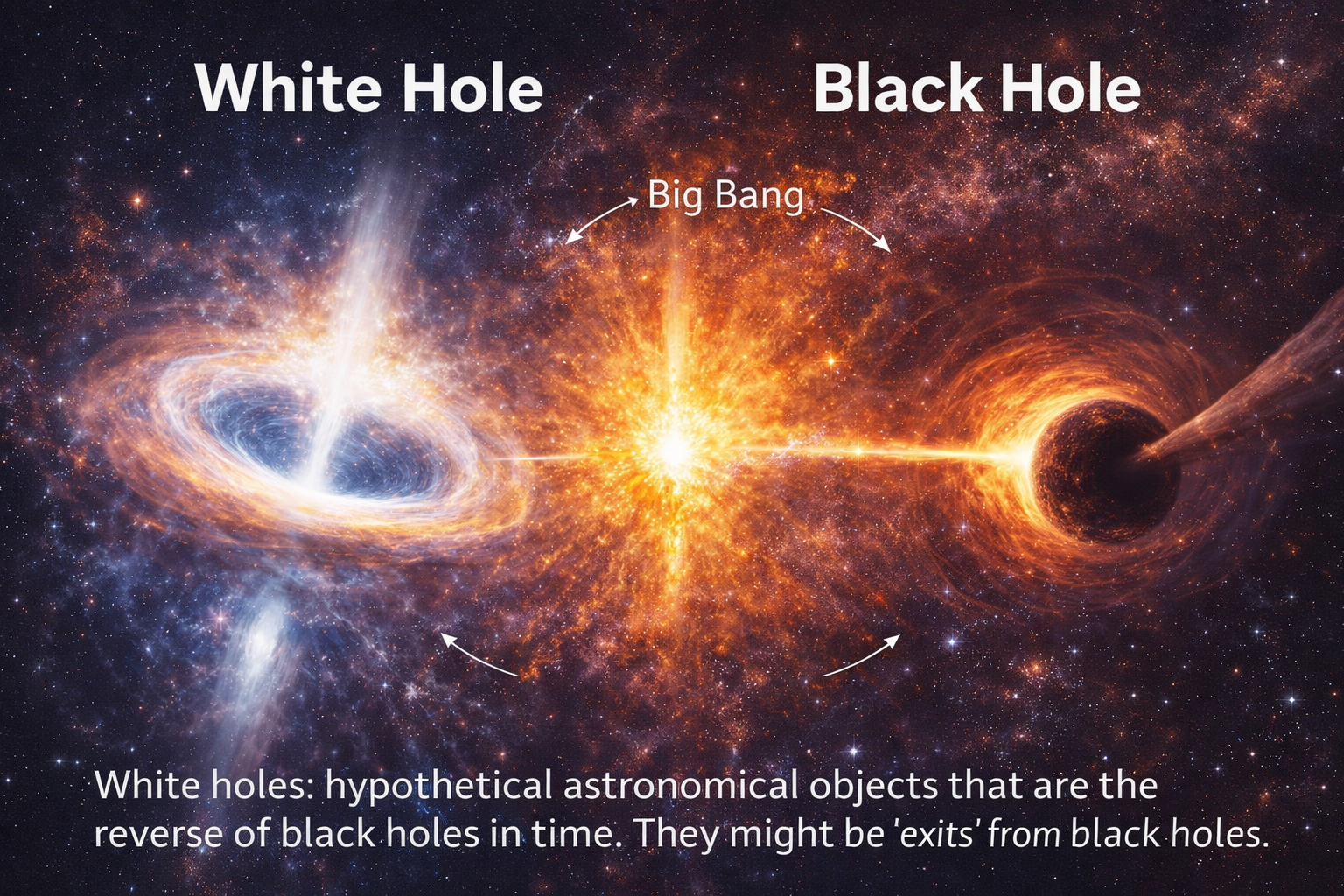 V moderní fyzice existují objekty, které nebyly nikdy pozorovány, přesto vycházejí přímo z rovnic popisujících strukturu časoprostoru. Bílé díry patří mezi nejzajímavější z nich. Nejsou výplodem science fiction, ale přirozeným matematickým důsledkem obecné teorie relativity.