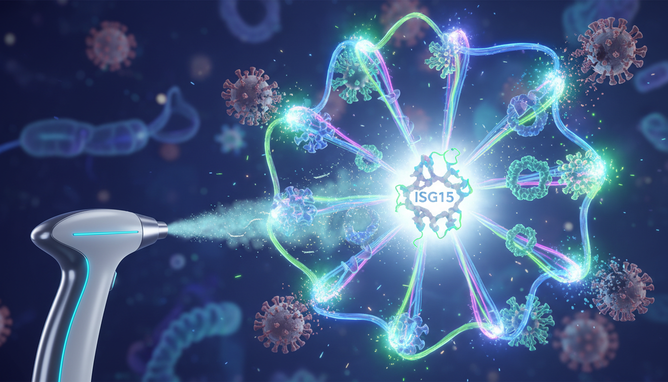 ISG15 je malý protein, který se v těle aktivuje během interferonové odpovědi. Běžně působí jako regulátor, který brání přehnanému imunitnímu vzplanutí. U lidí se vzácnou mutací však tato regulační funkce chybí. Jejich buňky se nacházejí v trvale aktivovaném protivirovém režimu, ale bez škodlivých zánětlivých reakcí. Tento stav blokuje replikaci virů ještě před tím, než mohou vytvořit první generaci kopií.