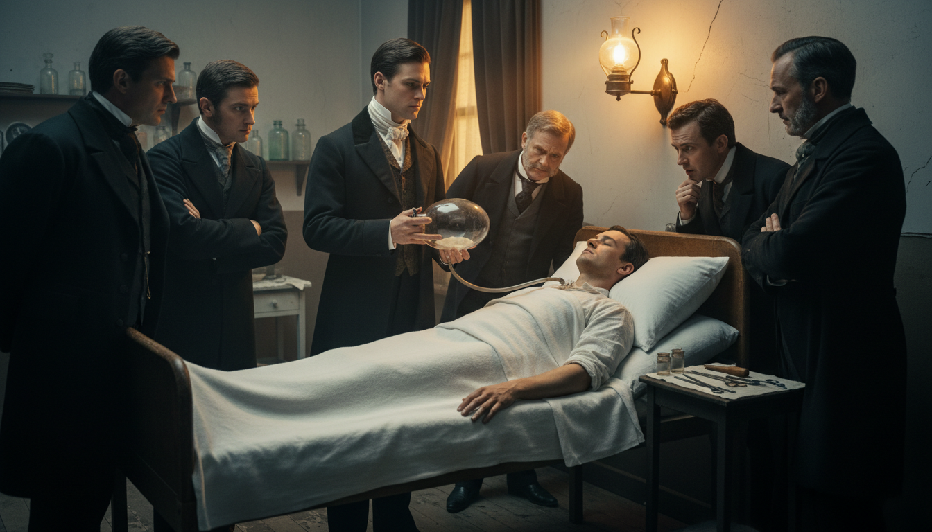 V roce tisíc osm set čtyřicet čtyři se odehrál moment, který navždy změnil medicínu. Americký zubař Horace Wells se zúčastnil veřejného vystoupení, při němž lidé vdechovali oxid dusný a propadali nekontrolovatelnému smíchu. Během show jeden z účastníků spadl ze schodů, vážně se poranil a přesto necítil bolest. Právě tato událost se stala impulzem ke vzniku moderní anestezie.