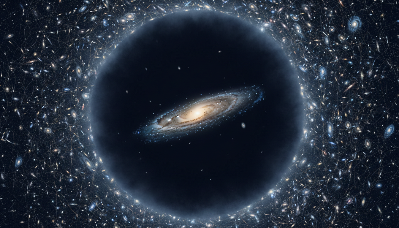 Nové astronomické analýzy naznačují, že Země a naše Galaxie se mohou nacházet uvnitř gigantické kosmické prázdnoty o průměru zhruba dvou miliard světelných let. Tato oblast má nižší hustotu hmoty než okolní vesmír, což může zásadně měnit náš výklad kosmologie a rychlosti rozpínání vesmíru.